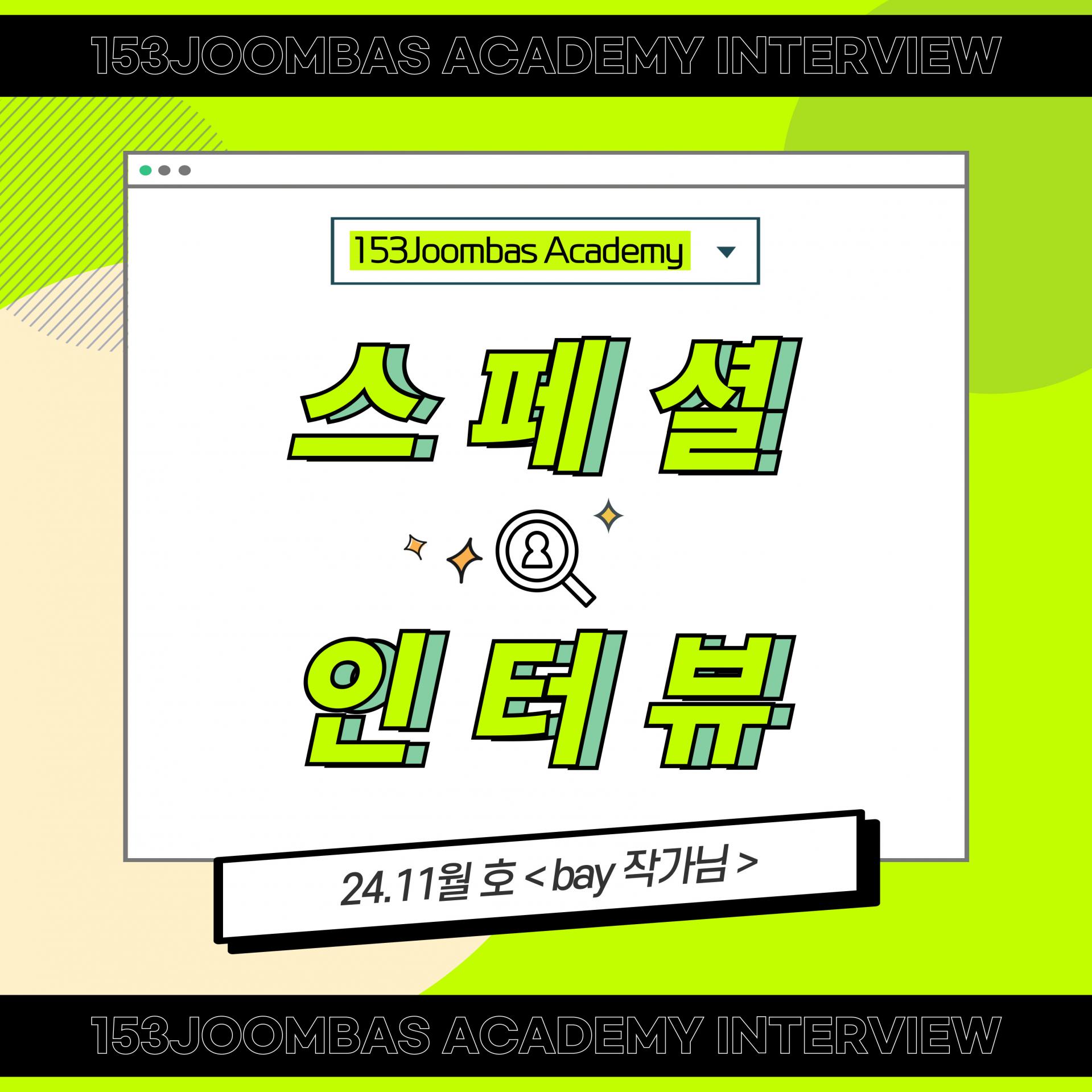 안녕하세요, 153/Joombas 전속 작가 bay입니다. 마스터 클래스 인터뷰로 처음 인사드렸었는데, 이렇게 강사로 다시 뵙게 되어 감회가 새롭네요🥹 약 1년 6개월 동안 비기너부터 마스터까지 수강생으로 참여했던 수업에 이제는 강사로 함께하게 되어 설렘과 긴장이 동시에 느껴지는데요, 아카데미에서 멋진 강사님들께 좋은 배움을 얻었던 것처럼 저도 수강생 분들께 많은 도움이 될 수 있으면 좋겠습니다.
